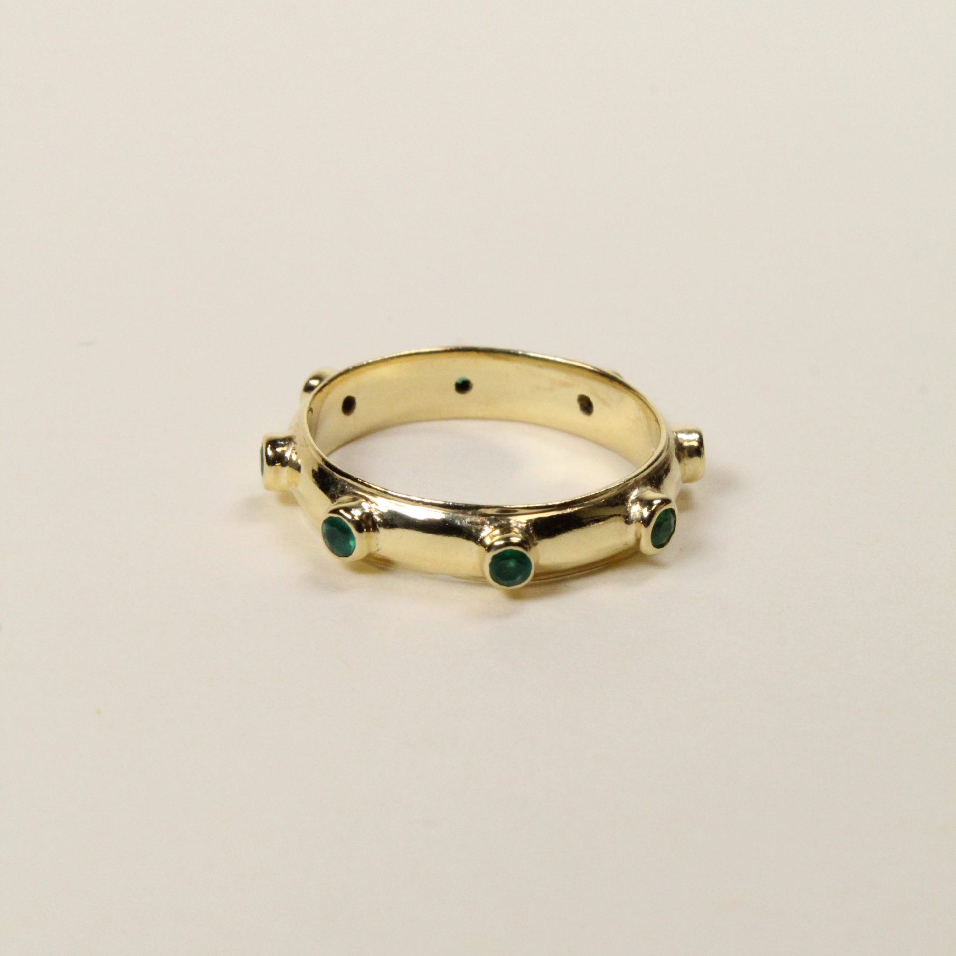The Gold Orbit Ring is a sleek, textured gold band accented with raised gem-like orbs, creating a modern celestial silhouette.