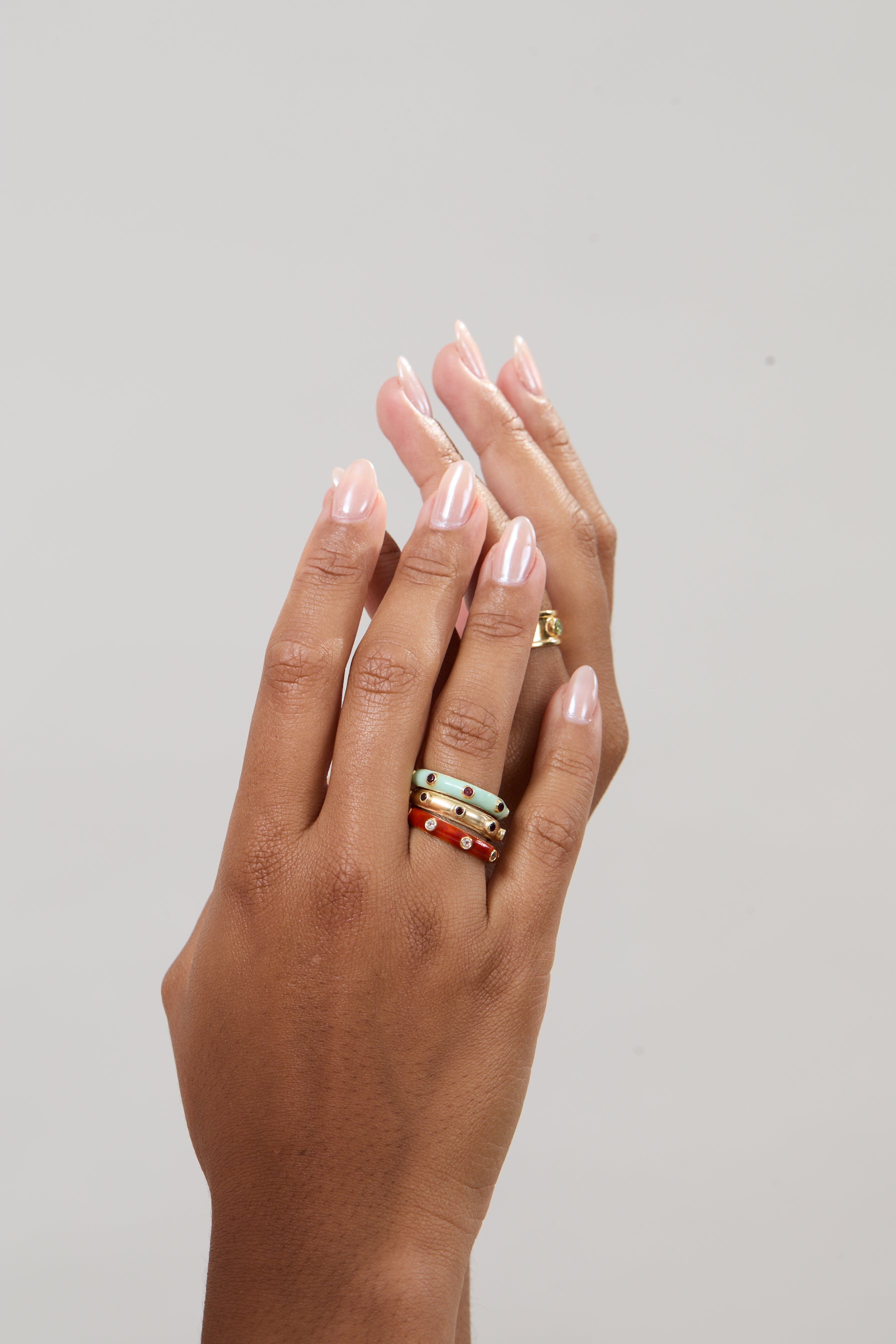 The Gold Orbit Ring is a sleek, textured gold band accented with raised gem-like orbs, creating a modern celestial silhouette.